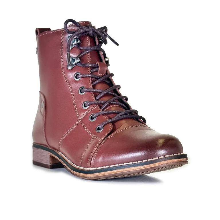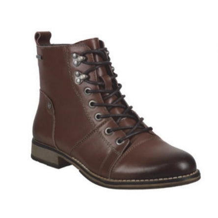Utilitarian attitude meets exceptional comfort in Berlina 08 lace-up bootie shaped with smooth full grain leather and grounded by a Chelsea heel. Top-Dry tex waterproof membrane generates the strongest barrier against all elements. Double-punched top metal eyelets bring a bit of the ranch to your steps.